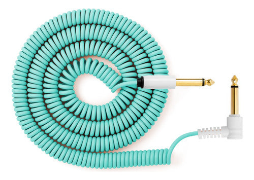MyVolts Candycords ACV7SB es un cable en espiral en color verde con conectores Jack mono a Jack acodado.